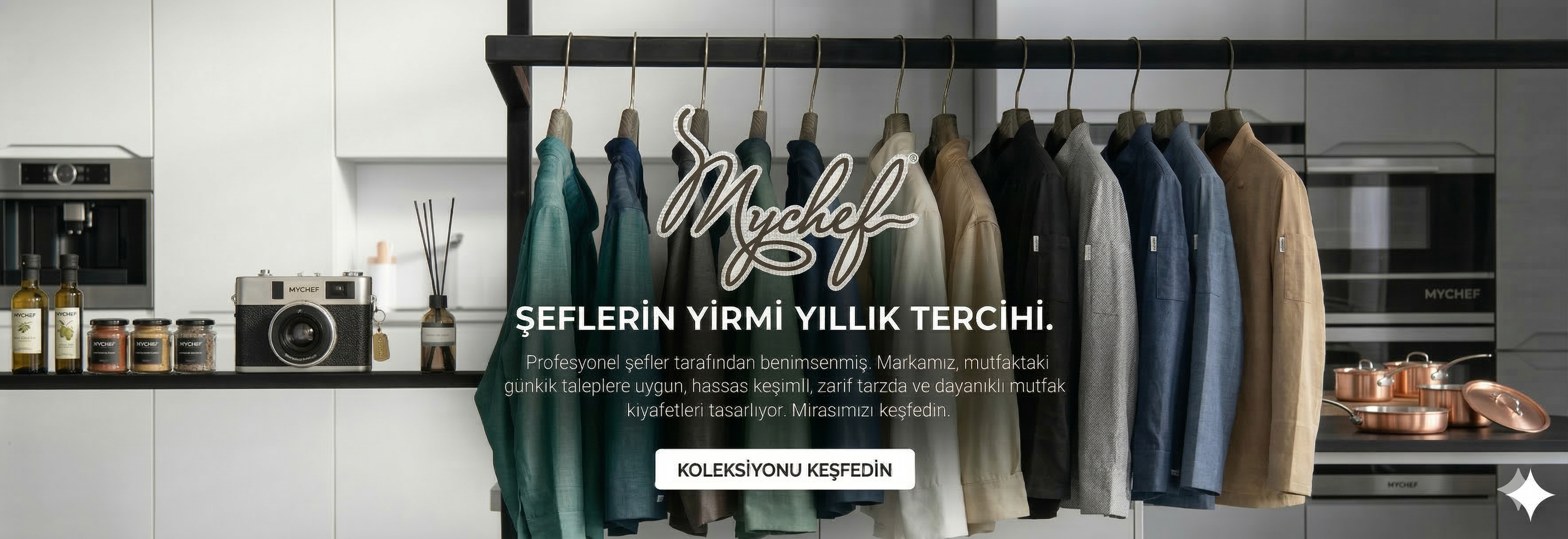 MyChef, profesyonel mutfaklar için tasarlanan zamansız şef giyim koleksiyonları sunar. Modern çizgiler, üstün kumaş kalitesi ve kusursuz işçilik anlayışıyla her detay, hareket özgürlüğü ve prestij için tasarlanır. Çünkü profesyonellik, detaylarda başlar.